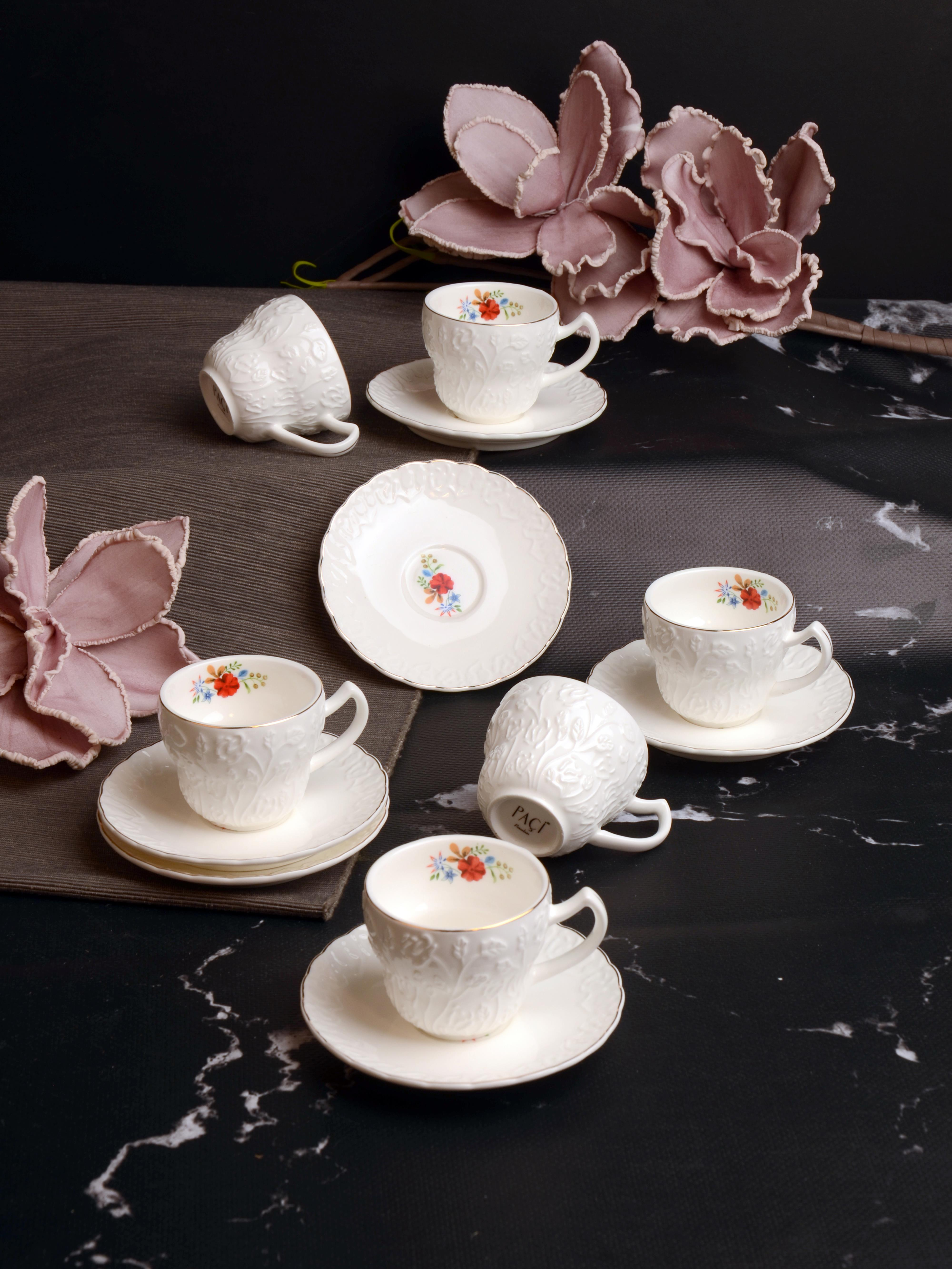 PAÇİ-AURORA KABARTMALI 6'LI KAHVE FİNCANI (P/POR-102232)