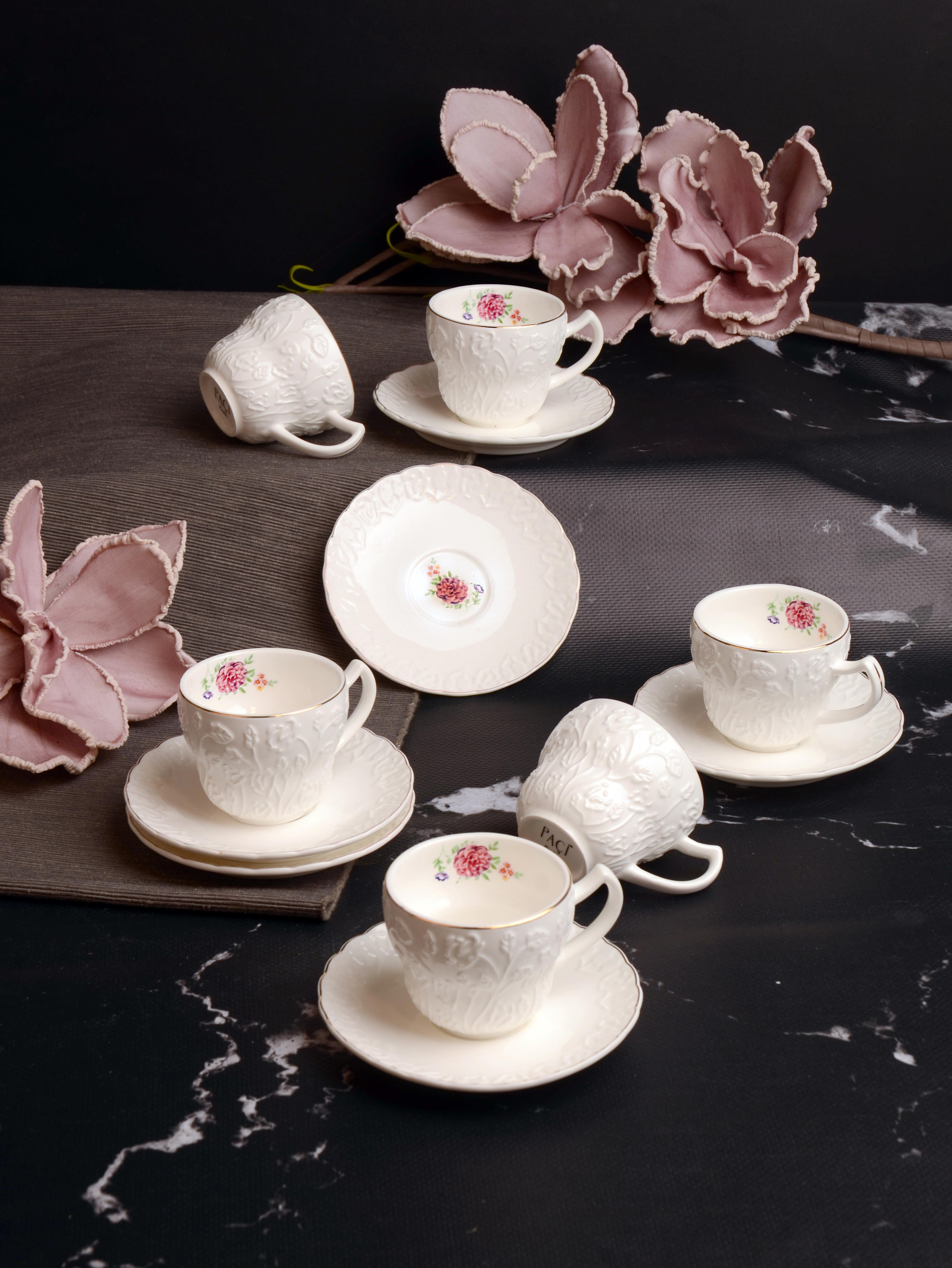 PAÇİ-AURORA KABARTMALI 6'LI KAHVE FİNCANI (P/POR-102235)