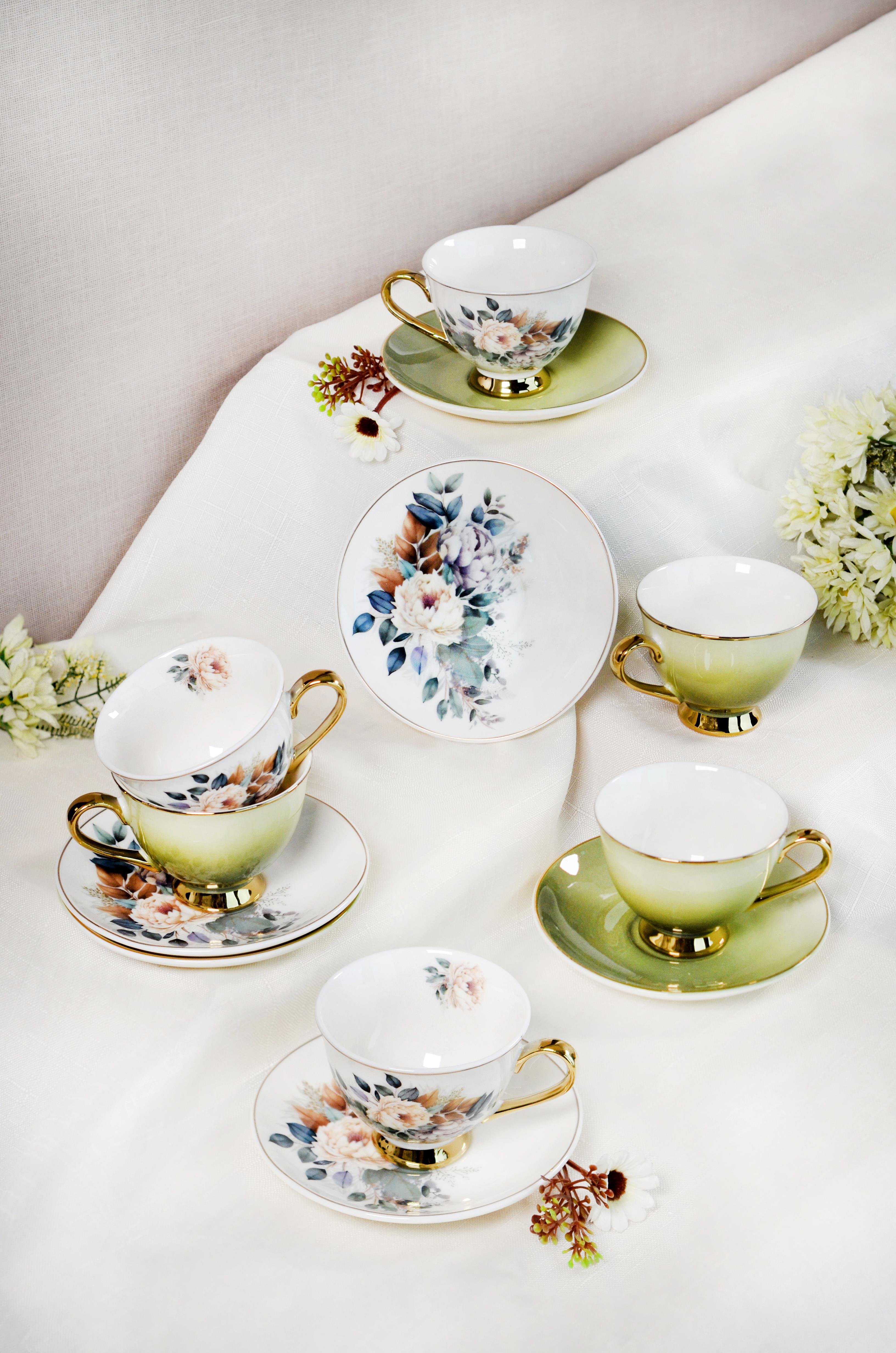 PAÇİ-BOTANİA ÇİÇEKLİ YALDIZLI KAHVE FİNCANI (P/POR-101759)
