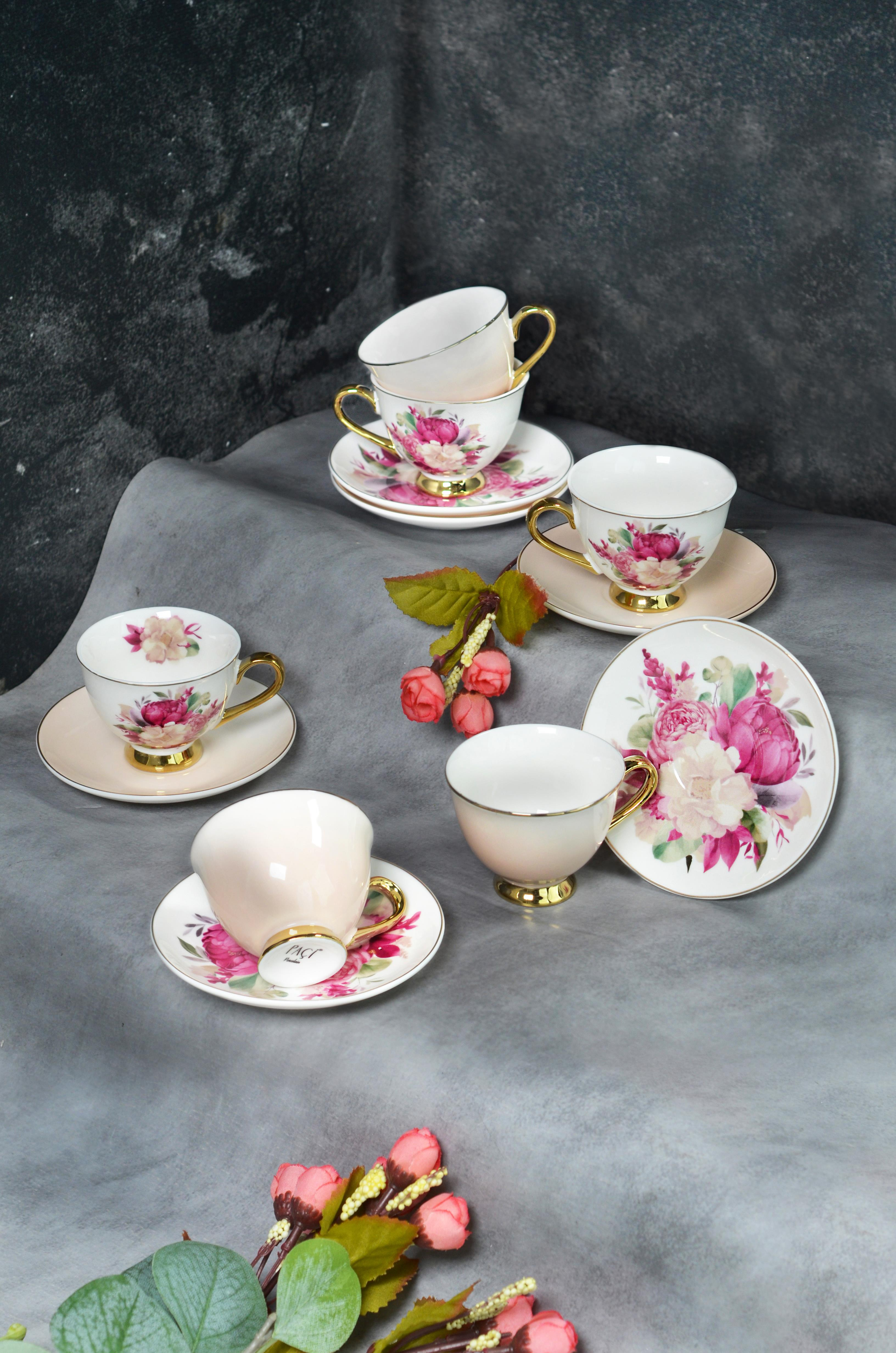 PAÇİ-ÇİÇEKLİ YALDIZLI KAHVE FİNCANI (P/POR-102083)
