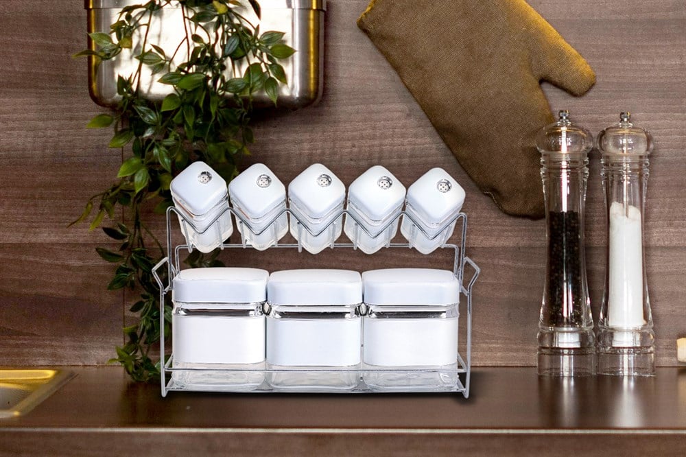 PAÇİ-FİONA 8'Lİ STANDLI BEYAZ GÜMÜŞ BAHARATLIK SETİ (P/CAM-401104)
