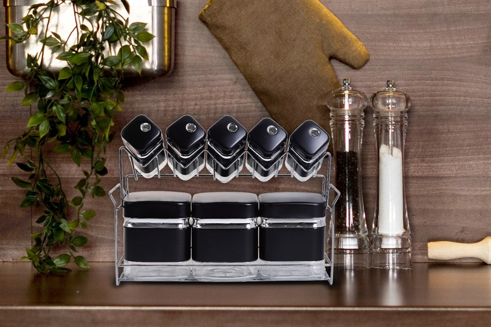 PAÇİ-FİONA 8'Lİ STANDLI SİYAH GÜMÜŞ BAHARATLIK SETİ (P/CAM-401103)