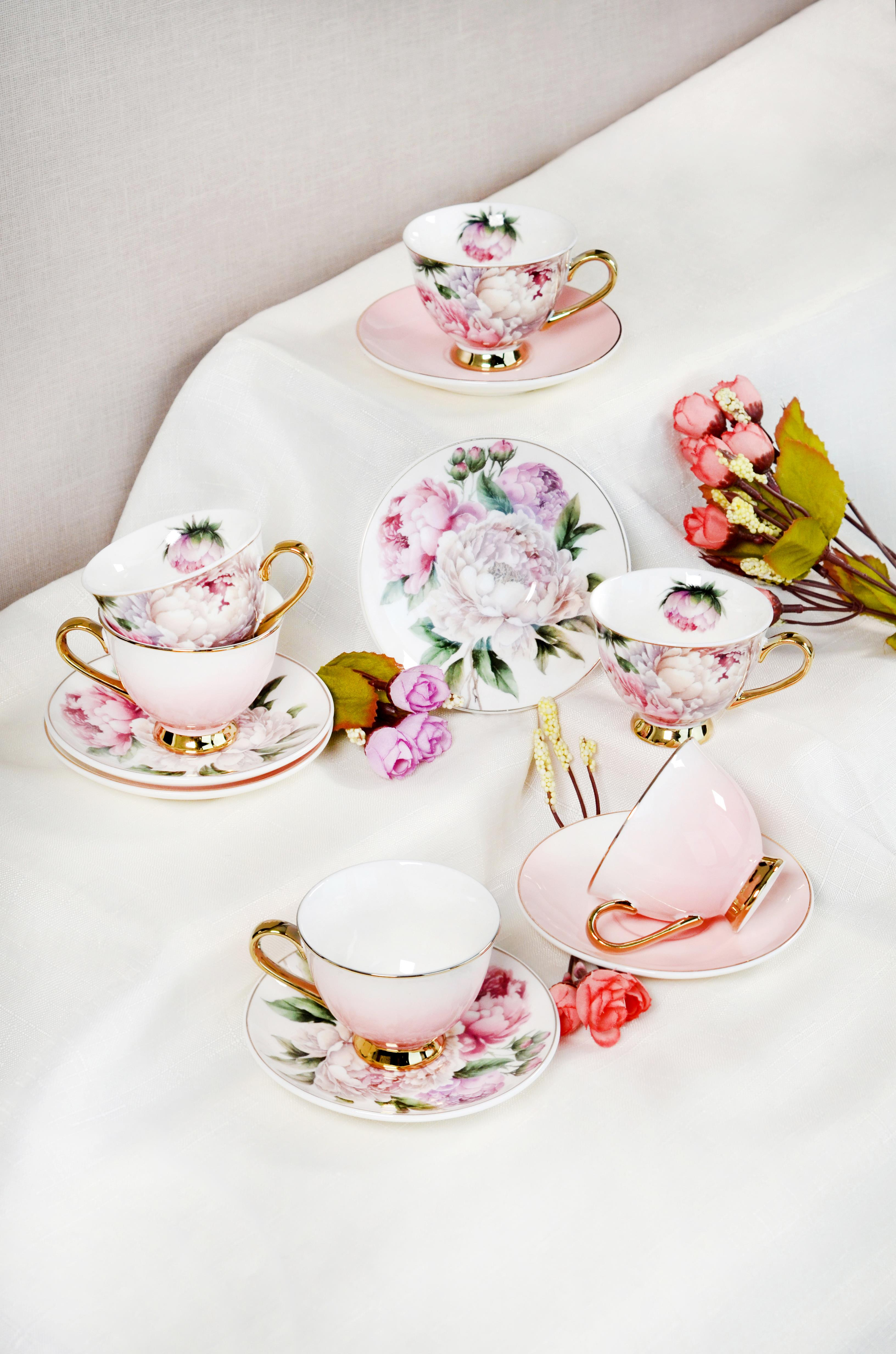 PAÇİ-GARDEN ÇİÇEKLİ YALDIZLI KAHVE FİNCANI (P/POR-101762)
