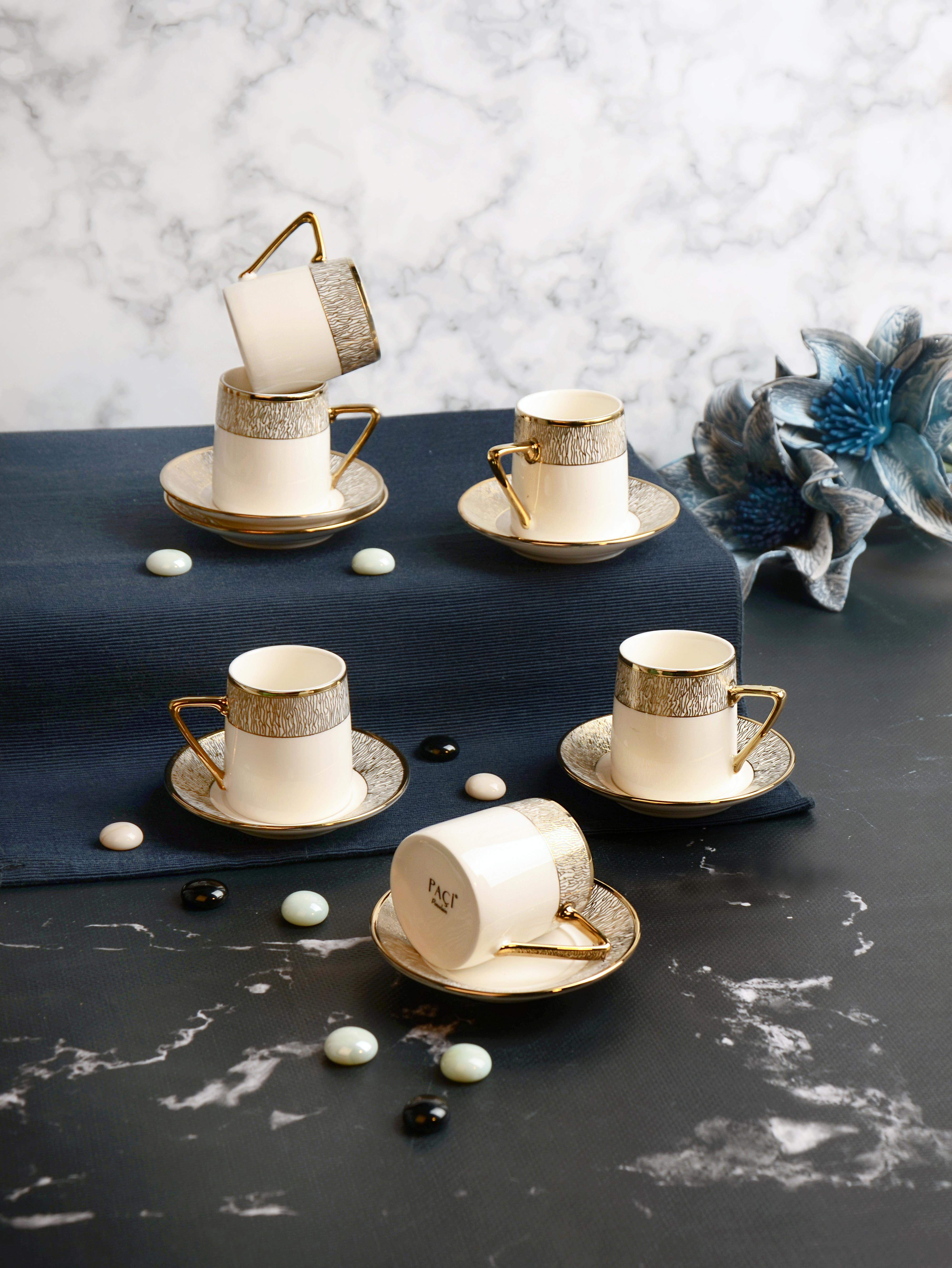 PAÇİ-KABARTMALI YALDIZLI 6'LI KAHVE FİNCANI (P/POR-102172)
