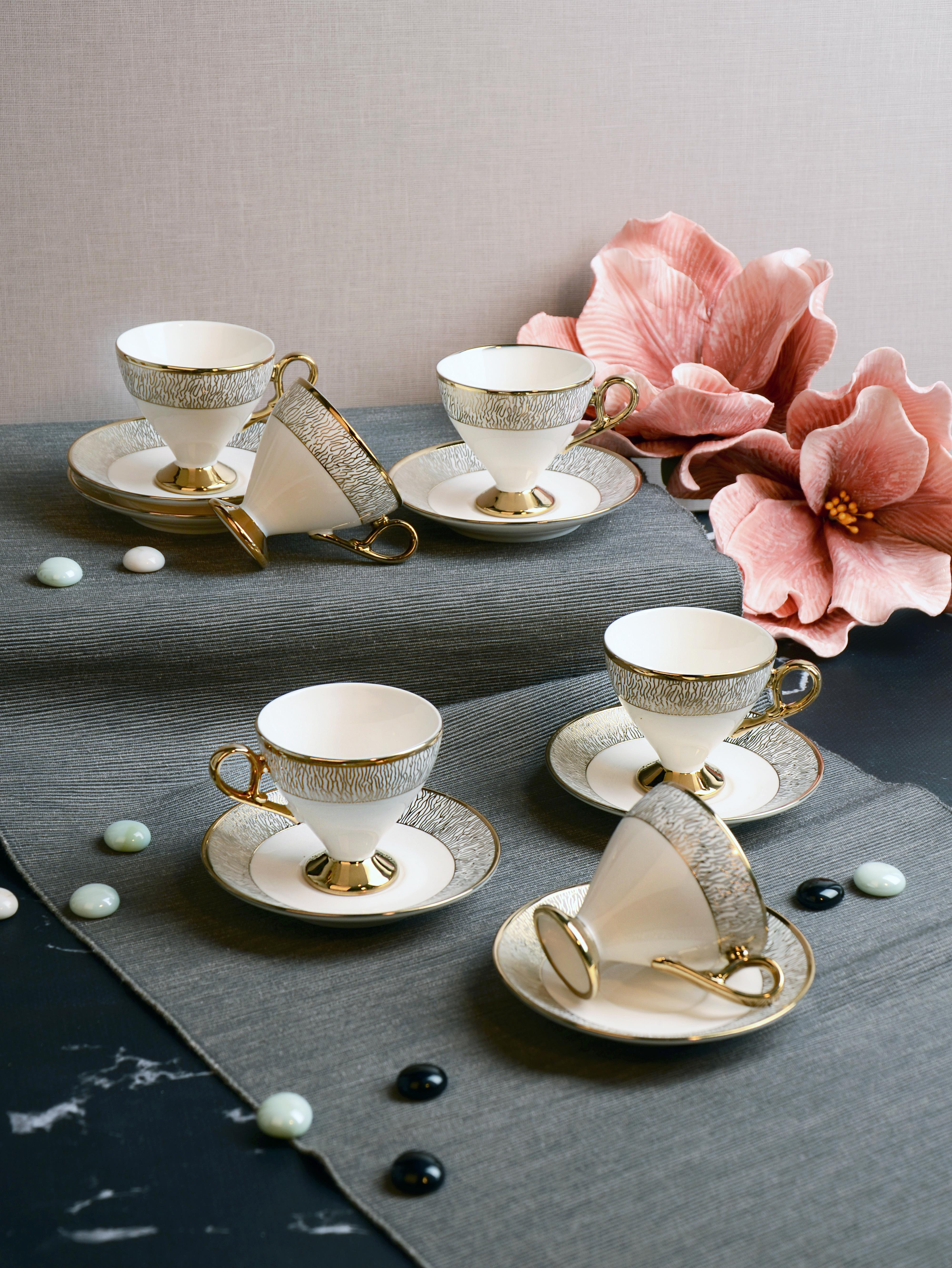 PAÇİ-KABARTMALI YALDIZLI 6'LI KAHVE FİNCANI
