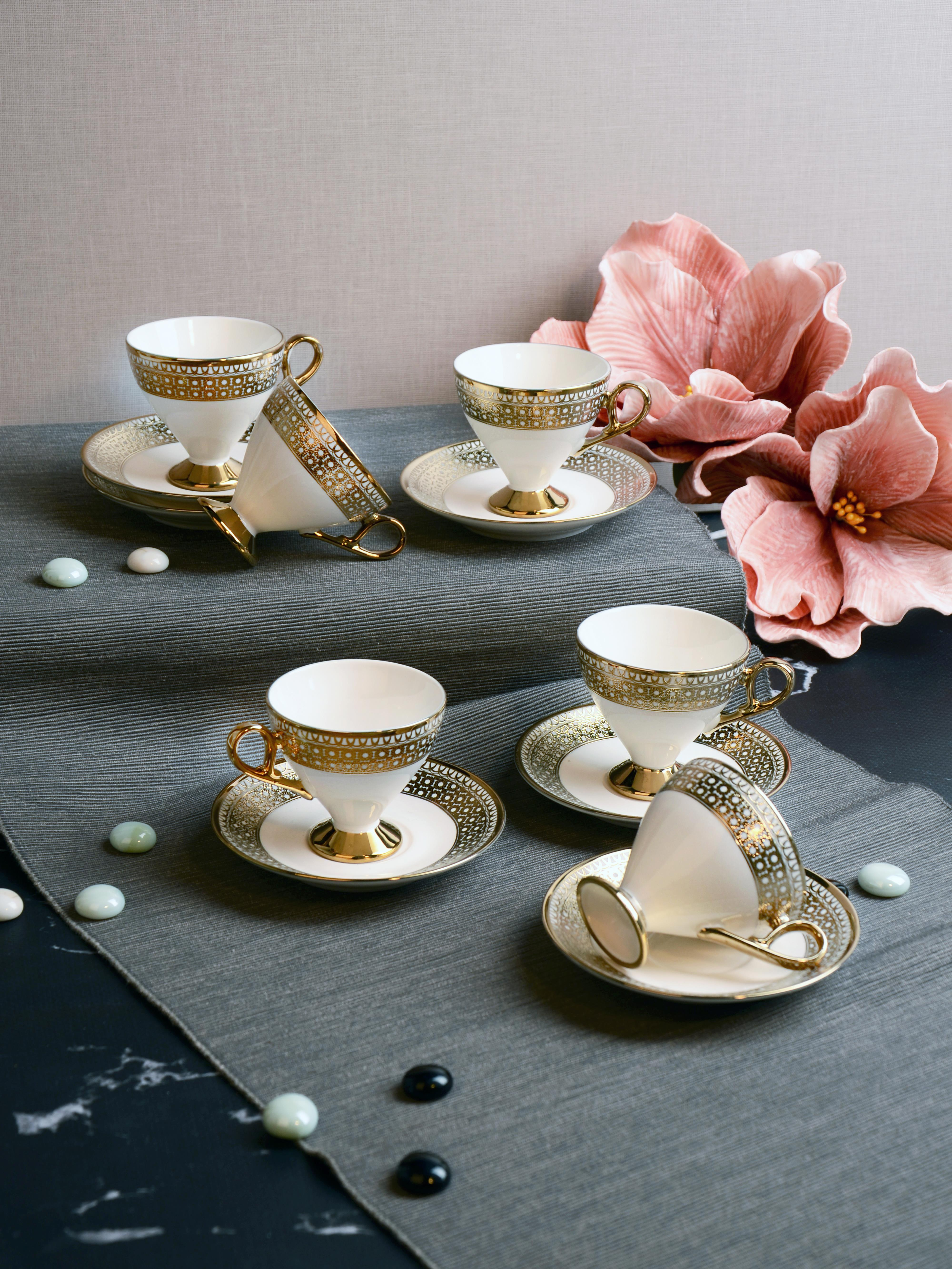 PAÇİ-KABARTMALI YALDIZLI 6'LI KAHVE FİNCANI