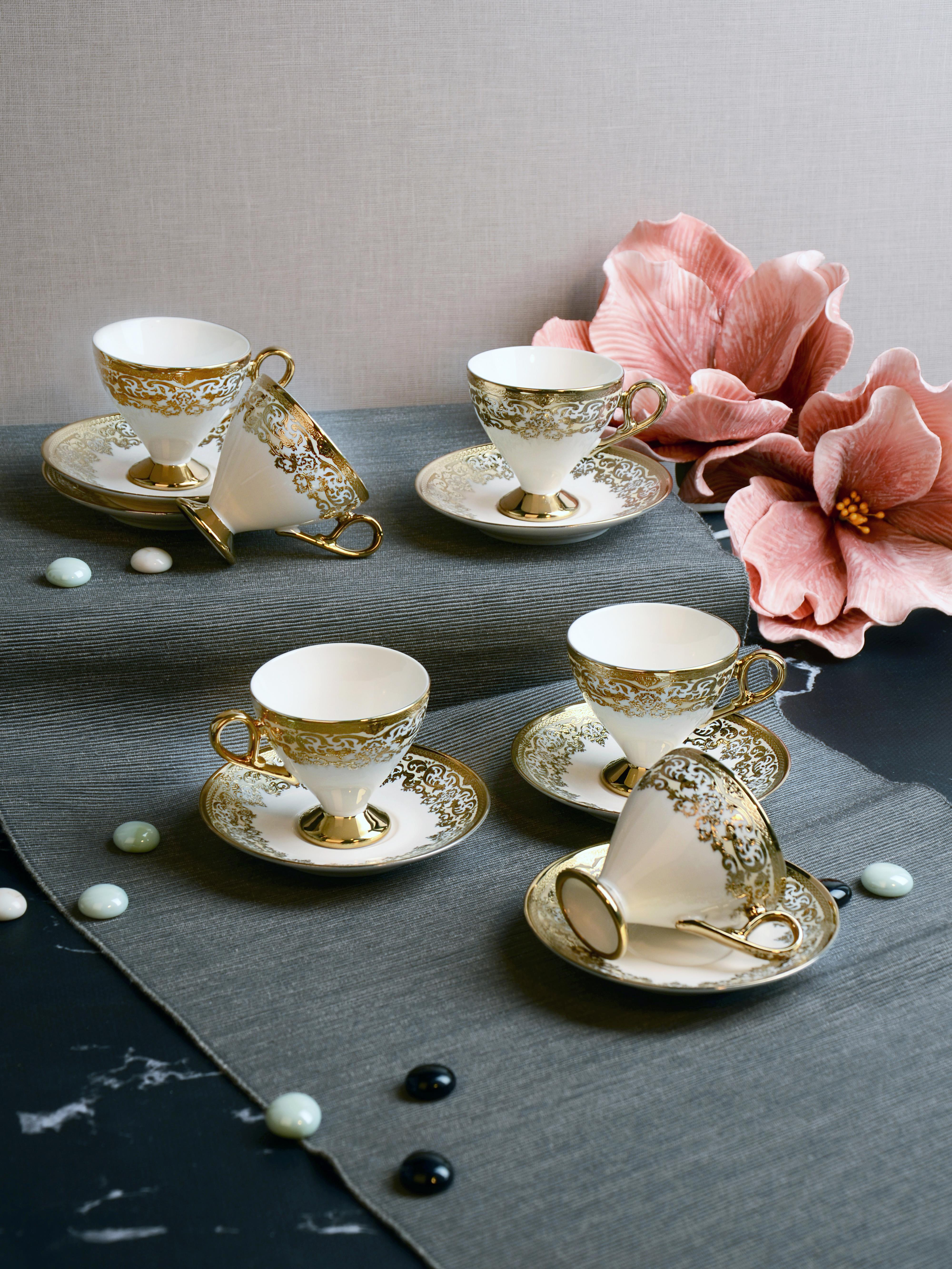 PAÇİ-KABARTMALI YALDIZLI 6'LI KAHVE FİNCANI (P/POR-102210)