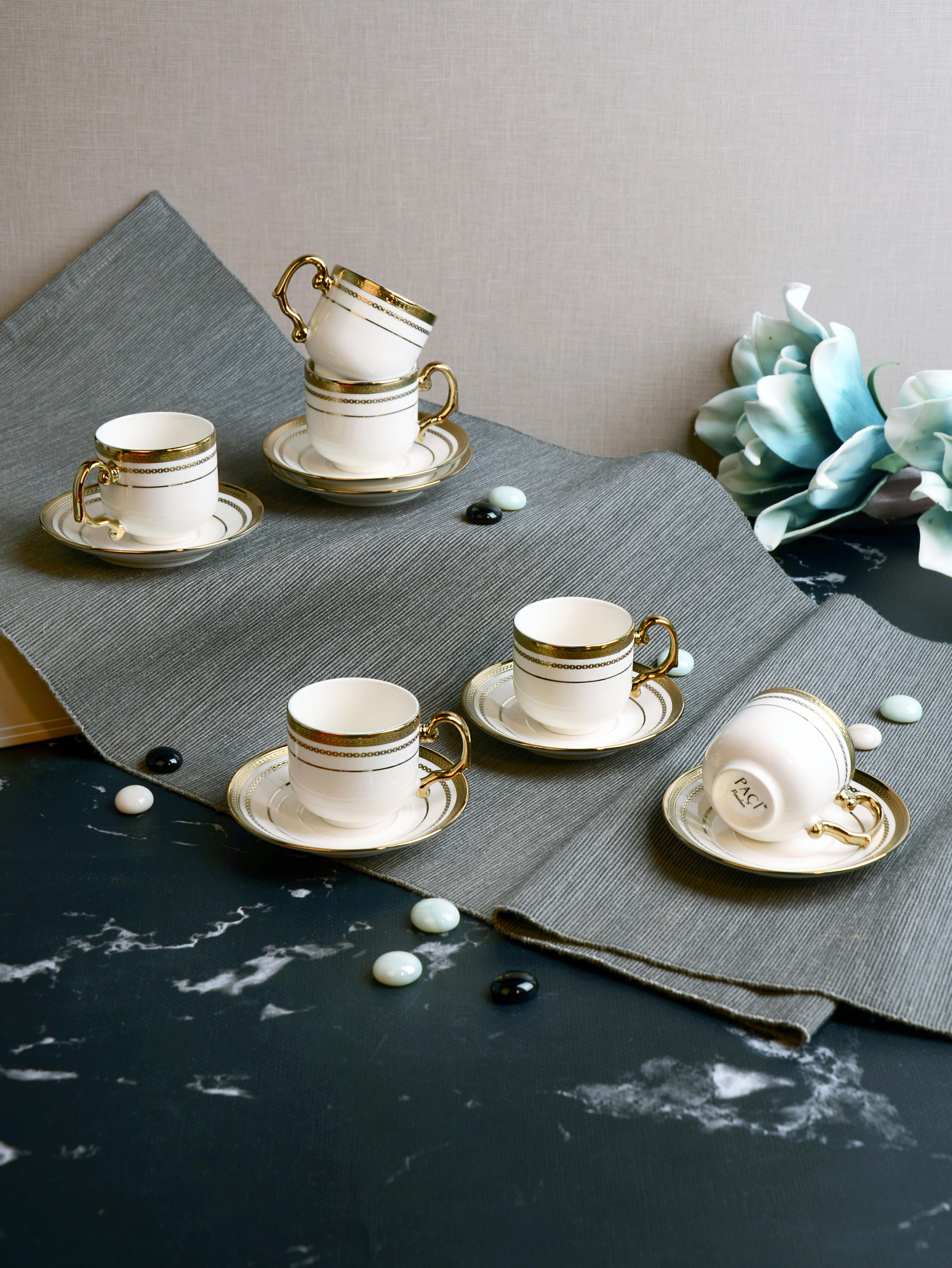 PAÇİ-KABARTMALI YALDIZLI 6'LI KAHVE FİNCANI (P/POR-102187)
