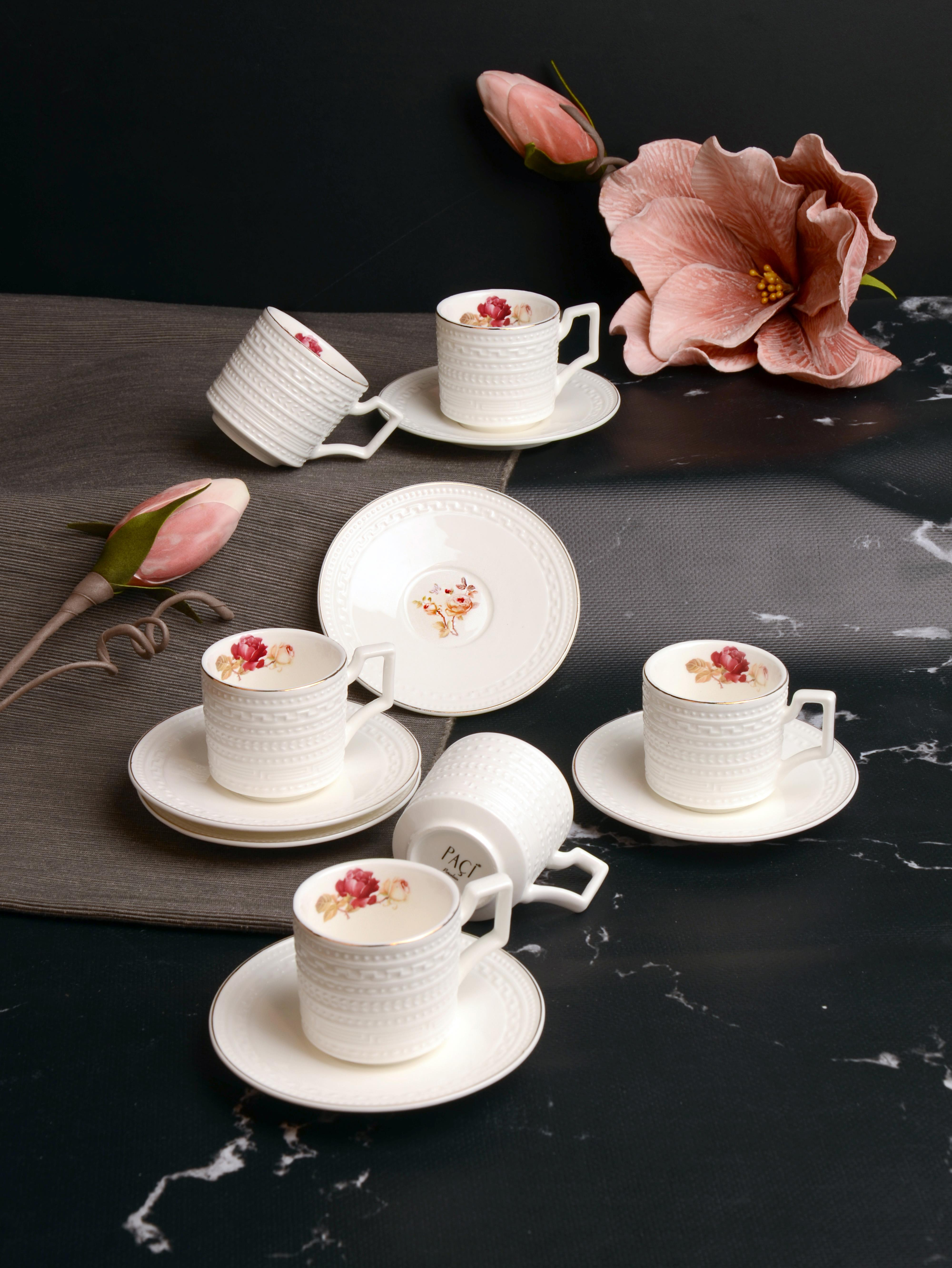 PAÇİ-LUNARIA KABARTMALI 6'LI KAHVE FİNCANI