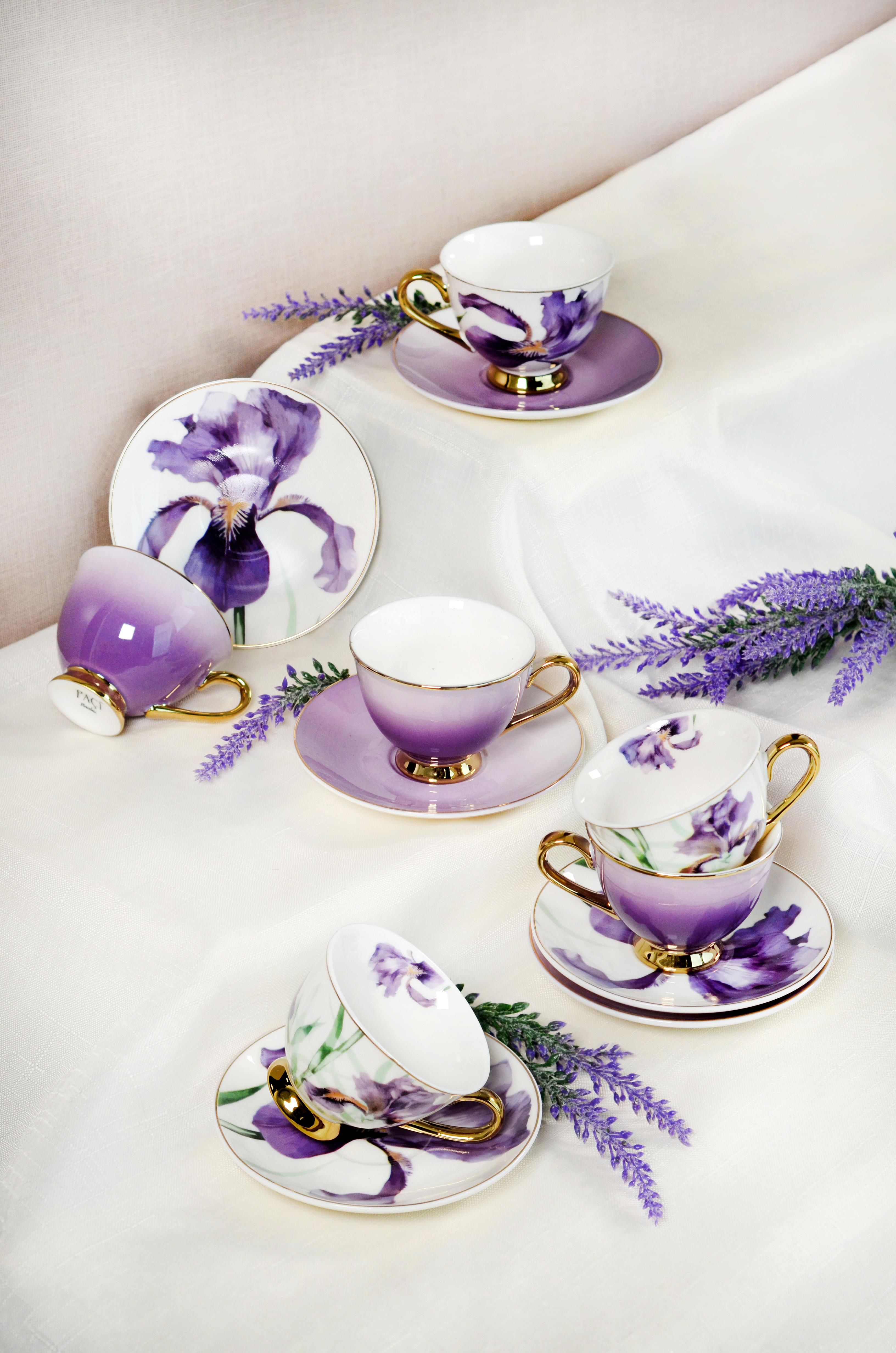 PAÇİ-ORCHID ÇİÇEKLİ YALDIZLI KAHVE FİNCANI